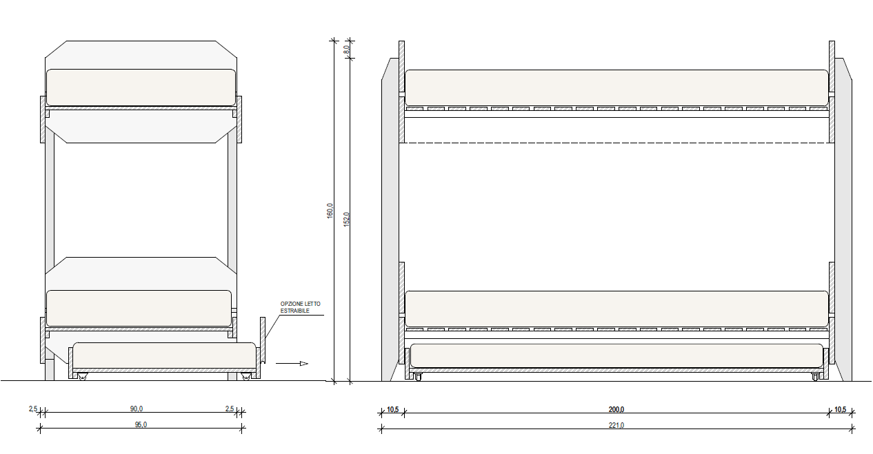 Das Stockbett Marylin ist Teil der Serie Marilyn. Diese bietet Massmöbel mit italienischem Design. Die Serie besteht aus Bett, Stockbett, Nachttischen, Schränken und einer Küche.