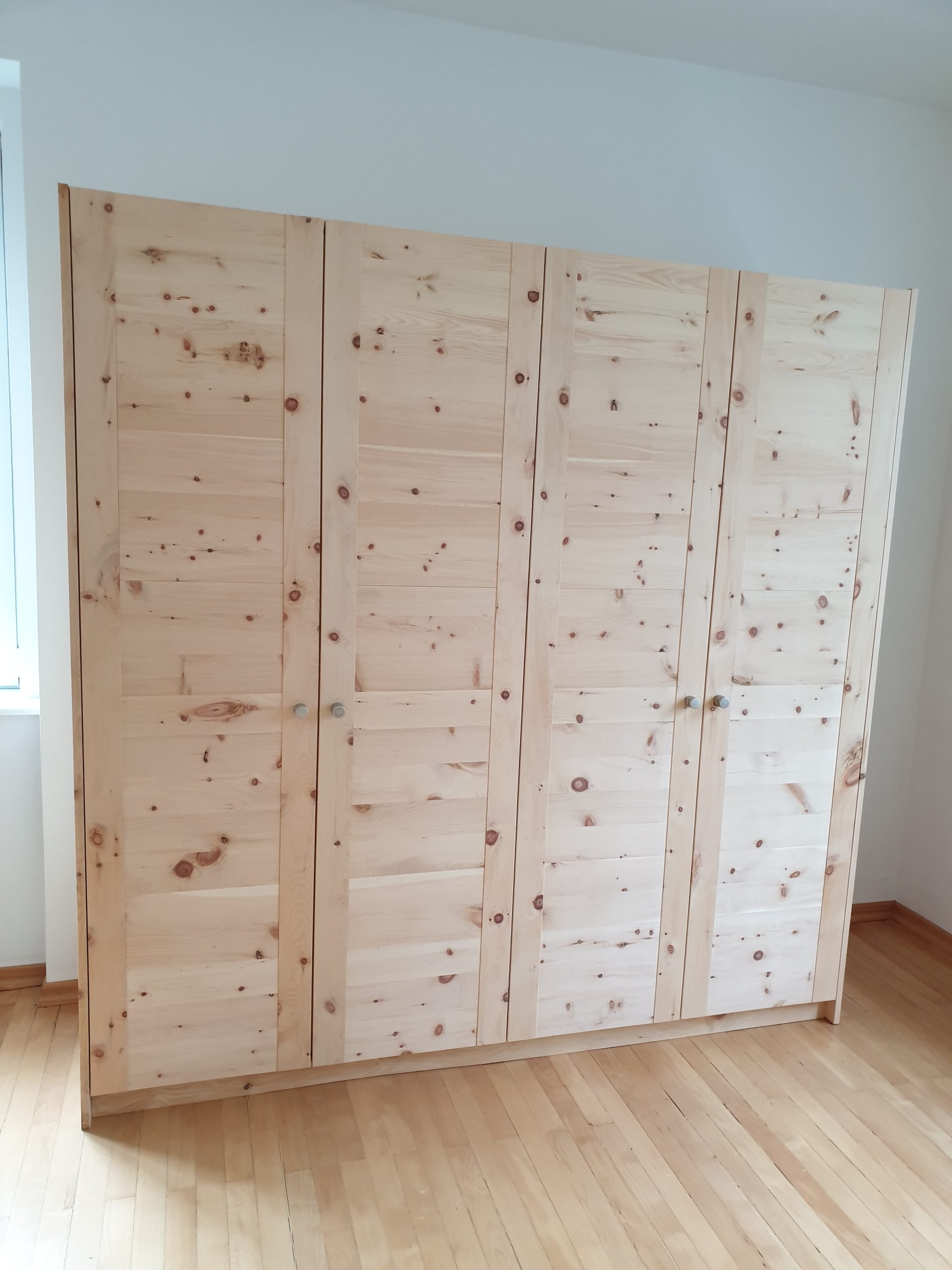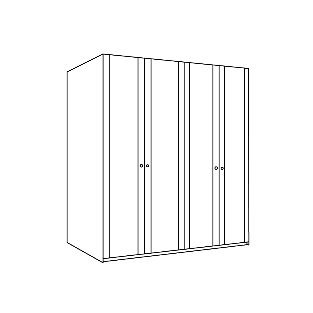 Das Modell Living Base Drehtüren überzeugt in seinem geradlinigen Design und seinen glatten Oberflächen. Der Schrank ist mit glatten Fronten ausgestattet und lässt sich durch Drehtüren öffnen. Innen besitzt der Schrank acht Fachböden und eine Kleiderstange. Die Inneneinteilung kann auf Wunsch individuell angepasst werden.
